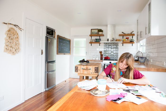 洛杉矶出生,基于N.Z.时尚设计师阿里尔Mermin的家和工作室在这里波西米亚风格符合不拘一格用一丝复古到底如何,你可以从她的名字命名的品牌描述Mermin的集合。加州本地人,谁在旧金山的偏心波西米亚房屋北部长大,是一个狂热的韦弗,艺术家,收藏家古董和冲浪爱好者,它通过她的妩媚,又朴素的房子里参观后并不令人吃惊。Located in Okato, a small quiet township on New Zealand’s north island, the 1960s home Mermin shares with her husband, Josh, and dog, Buddy, combines the laid-back style of L.A., nostalgic essence of San Francisco, and refined European style from her worldly travels.滚动到带她去梦幻,轻松居之旅。