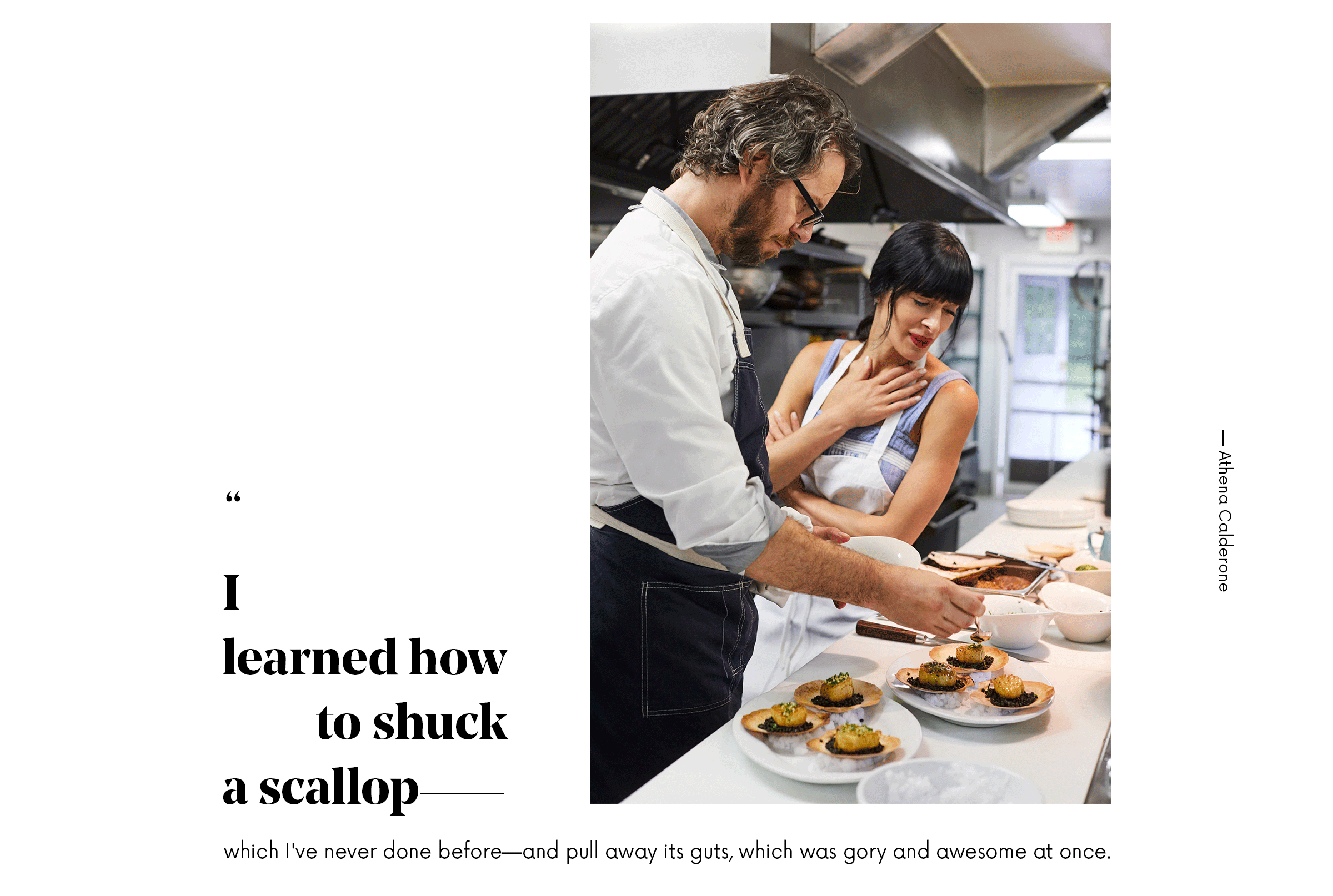 梅德斯通酒店具有不可否认的吸引力。这座历史建筑的大回廊俯瞰着小镇上最美的景色之一:平静的池塘里垂柳成行,还有一户大家族的白天鹅(这并不奇怪)格温妮丝帕特洛是风扇)。在一个安静的早晨月,我们邀请了我们最喜欢的一个Hamptonites本地居民,家庭厨师和娱乐专家雅典娜Calderone的EyeSwoon- 对于烹饪课与厨师Standridge公司。随着一系列昏厥值得晚宴她的腰带和她的下备受瞩目的食谱在路上,有用于烹饪大师班将要发生没有更好的匹配。在菜单:姜黄,石灰黄油,黑扁豆,生姜和香葱烤扇贝潜水员。