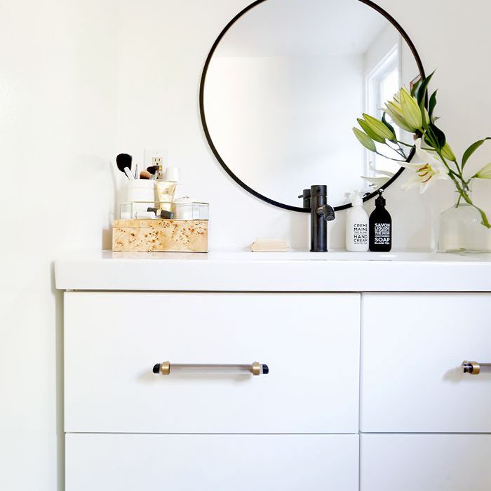 “浴室让我笑了,因为——哇-以前,”Sotelo说。和大多数老式浴室一样,它也很陈旧,米色的瓷砖和墙壁,还有一个摇摇欲坠的木制梳妆台。只要花1000多美元,我就可以为我们所做的整容手术感到骄傲——这证明了伟大的、可承受的设计是可以实现的。”