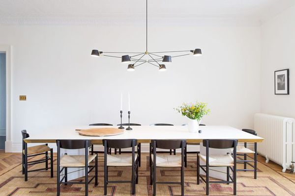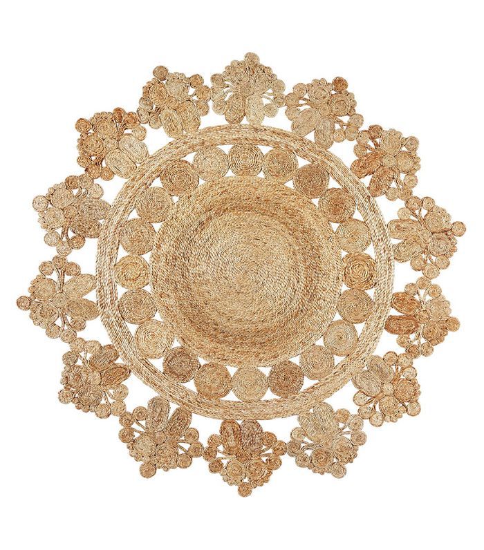 用这张圆形的黄麻地毯在一个小圆桌下固定它在空间里。你会喜欢它给你的厨房带来的质感。