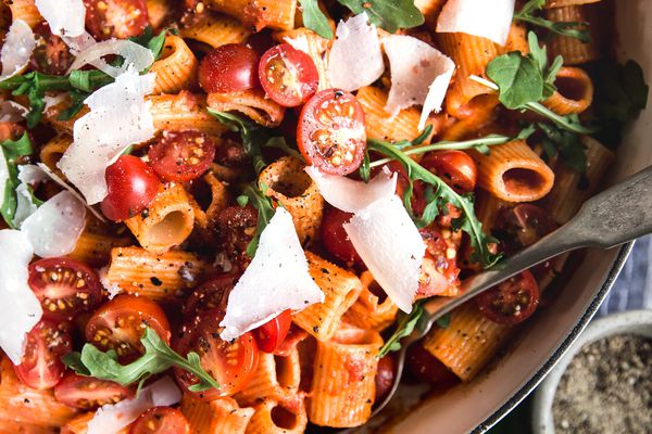 配方:上面撒上脆脆的烤鹰嘴豆,再撒上新鲜的西兰花和韭菜香蒜酱,这个疯狂的,美味的意大利面食谱是理想的忙周日晚上去到冬天和春天之间的过渡季节。