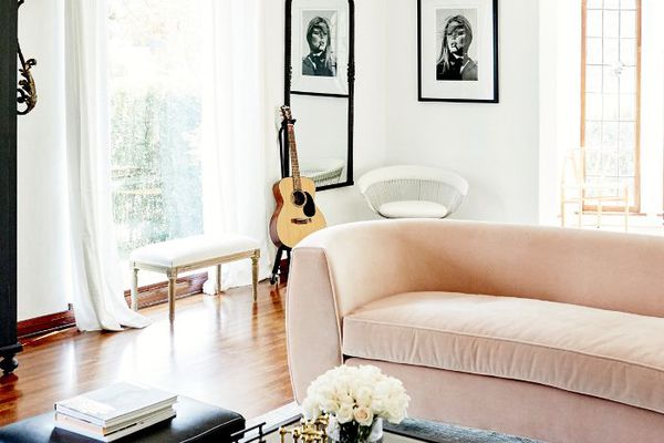 一个别致的弧形天鹅绒沙发,通常售价不到1300美元?我们签字。