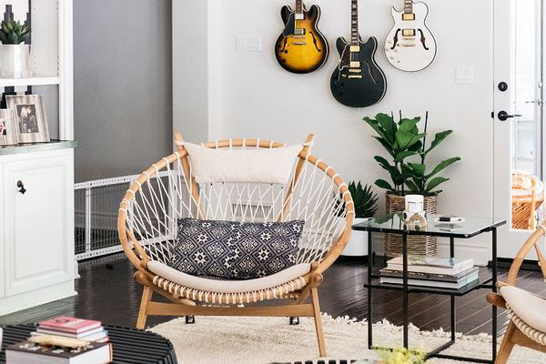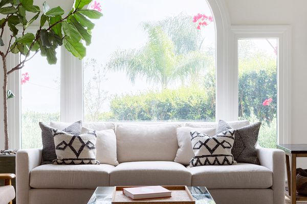 为什么这是伟大的:在房间内一个高大的树有助于融入外部花园和客厅真正的加州风格的内饰。到本世纪中叶椅子,像法国和儿子的国旗升降索,被分层的空间与地毯,羊皮罚球,和枕头,创造一个舒适,悠闲的氛围和软化鲜明,当代建筑。