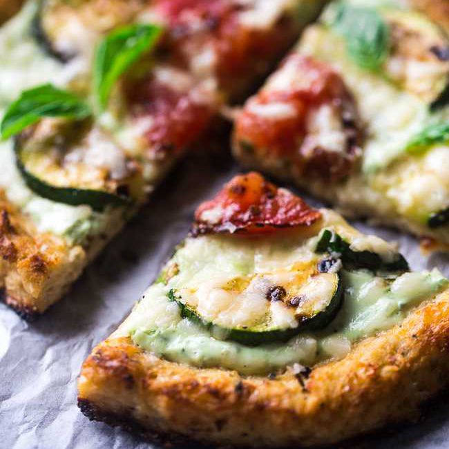 配方:花椰菜披萨配希腊酸奶、香蒜酱和烤蔬菜