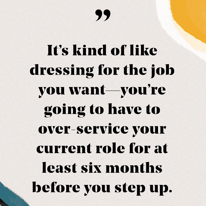 她明确指出,这并不是要强调你承担的所有额外工作,而是简单地说:“我喜欢这些额外的责任,但是。我希望大家能认识到,我现在为更多的职位提供服务,比最初聘用时的级别更高了。”她补充说,“这就是希望- - - - - -你实际上扮演了一个比最初雇佣你时更高级的角色。这有点像为你想要的工作而穿衣- - - - - -在晋升之前,你至少需要在6个月的时间里为目前的职位做过多的工作。”