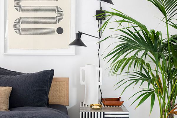 如果您的思想毫无疑问,波西米亚生活方式可以容纳现代黑墙,这是您所需的所有证据。添加自然纹理,就像皮革床头板,毛皮扔,绿叶一样,墙壁的深色补充着,使这间卧室感到无巨大的波希米亚。
