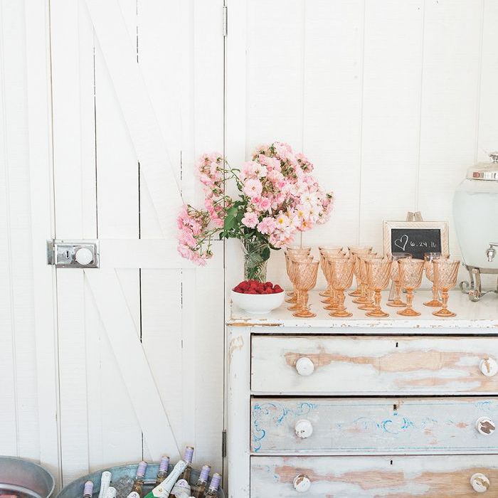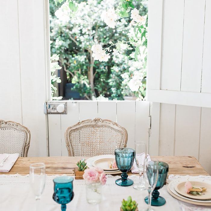 准新娘坎德拉·扎米尔的朋友们就是这么想的,他们给了她一个波西米亚风格的惊喜。扎米尔儿时的朋友,时装设计师莉莉阿什维尔,还有阿什威尔的妈妈瑞秋破旧的别致),共同创造了一个悠闲的加利福尼亚氛围的英式花园聚会。认为古典的tablescapes,新鲜植物冠,花边伞,中国不匹配和一个棉花糖摊。我们爱的加州圣每个餐桌上都有小束的玫瑰和水晶:这是波西米亚风格中最精致的。