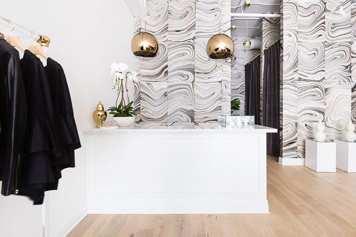 安妮心中有一个明确的目标,当她走近店面的设计。“我想在服装光泽和采取的中心舞台,”她说。“我设想作为一个美丽的大背景下空间(如集)。我知道我想要做壁纸在后面画的顾客,和大理石花纹在另外的空白处添加图形元素。