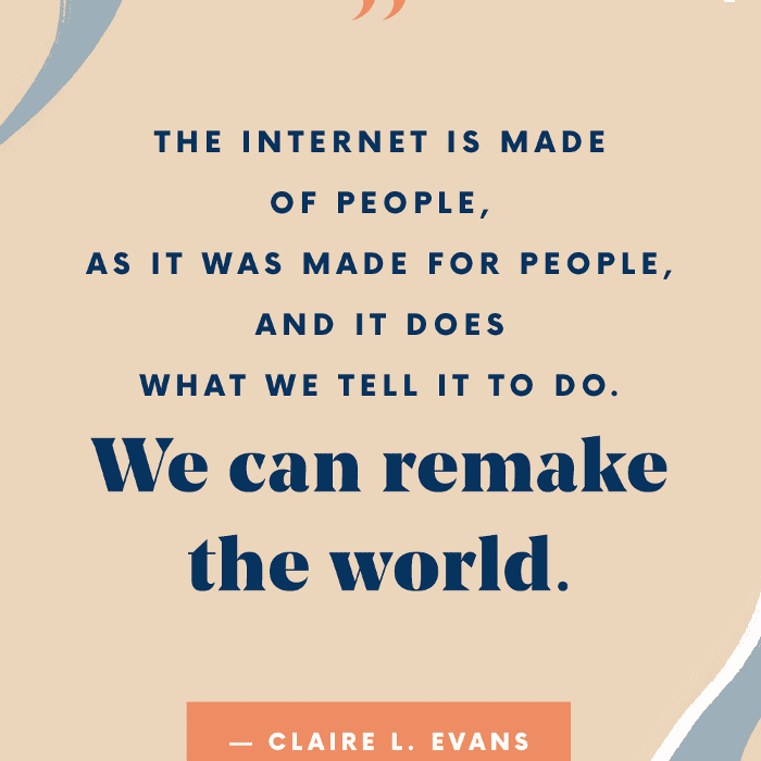 埃文斯写道:“餐桌上的多样性越多,屏幕上的结果就越有趣,越人性化越好。”为妇女创造数字产品,为她们建立社区,并欢迎她们就业是取得进展的第一步。“没有合适的工程师……没有合适的教育,没有合适的职业道路,”她说。“互联网是由人组成的,就像它是为人而造的一样,它做我们让它做的事情。我们可以重塑世界。”
