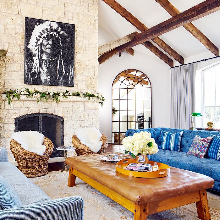德克尔打开了南部的魅力在客厅用纳瓦霍满足庐舍口音的数组。专注于小配饰来重新创建的外观。
