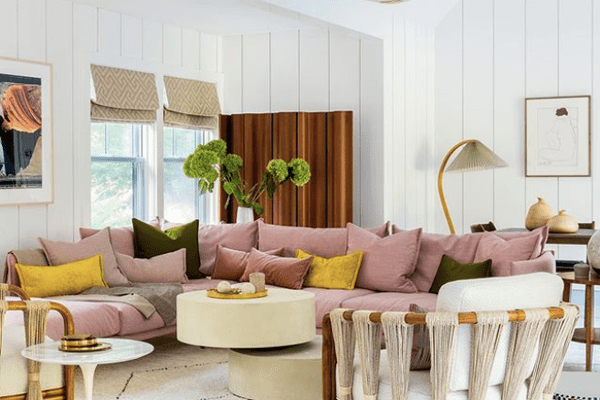 无论你决定用什么颜色来粉刷横梁,都不要忽略它们之间的空间。我们喜欢这些白色的光束是如何强调之间的黑色和白色的人字形印刷。最后的外观看起来就像一个视觉错觉,但不可否认的是,它让这个客厅感觉更加美妙。