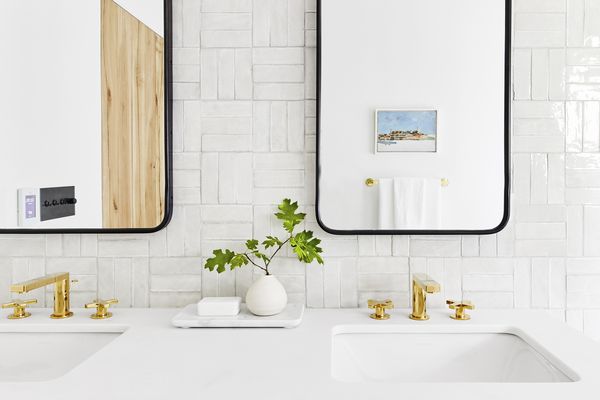 夏普的角度,未来的形状,及多明亮,温暖的混合,并冷却色调让这间浴室墙壁五颜六色点头标志性设计和装饰上世纪80年代的(和一些从时间我们最喜欢的大胆时尚的,以及)。通过对比一分钱砖,彩色几何搁置创建的颜色和色彩大胆的硬件模块将补充能量和乐观的任何上午的例行。