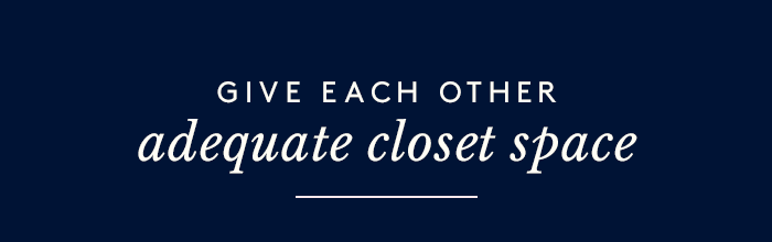 重要的是要认识到每个人需要多少空间放置衣服和其他物品,并找到对双方都有利的存储解决方案。占用宝贵的壁橱空间而不提供其他解决方案是没有效率的。