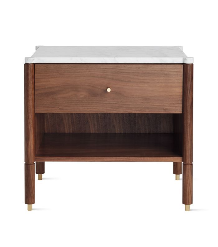 这张令人惊叹的床头柜由布鲁克林的工作室Egg Collective设计,有黑橡木和胡桃木两种材质可供选择。它的设计灵感来自于主人的朋友莫里森·马伦(Morrison Mullen)的一件定制作品。轻微的扇形边缘和卡拉拉大理石顶部给作品永恒的优雅。