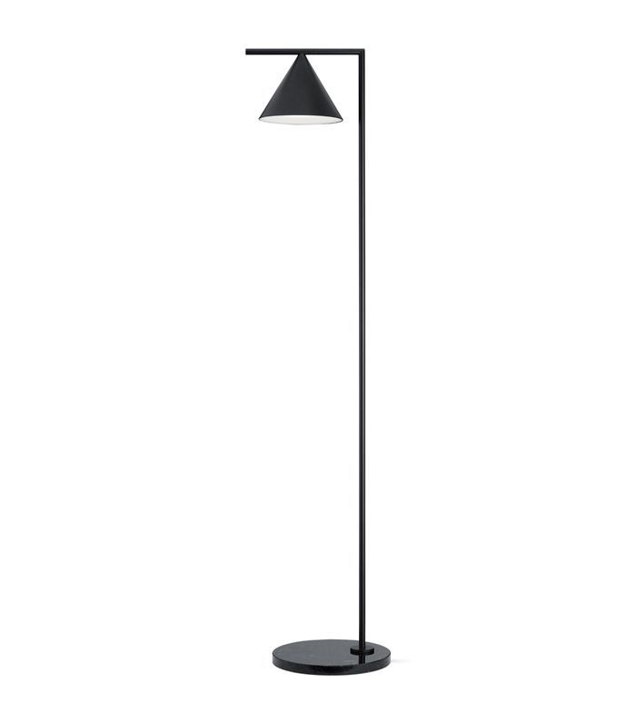 可在黑色或黄铜,这一雕塑落地灯由迈克尔阿纳斯塔西迪斯服务的形式和功能。锥形遮光罩安装在一根旋转的杆上,所以它可以向下,向上,甚至是侧着放置。