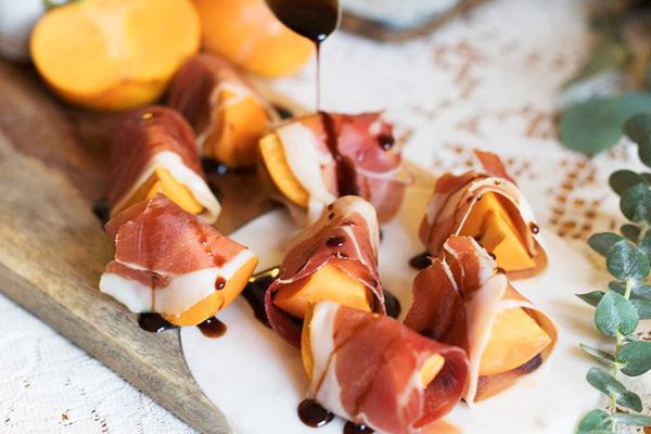 这道柿子沙拉在新年前夕的聚会上看起来会很漂亮,但更好的是,它的制作非常简单,而且尝起来也很美味。将扶玉柿子切成薄片,与布拉塔饼、石榴籽、烤榛子、橄榄油和香醋一起放入盘中。