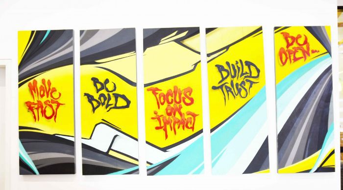 Instagram的值是“社区”,“创意”和“简单”和Facebook的值是“动作快”,“大胆”,“重点影响”,“建立信任”和“开放”。