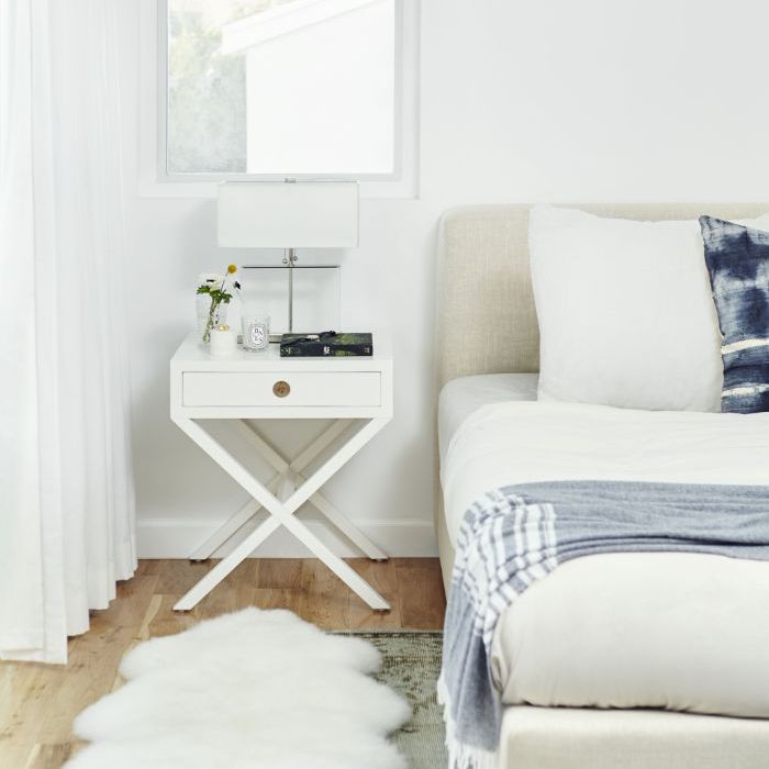 这个幸福的卧室是喜剧作家艾琳·福斯特享受最甜蜜的梦境的地方。虽然粉底是中性的,但它绝不是平淡无奇的,这要归功于印刷艺术品、抱枕和印花毯子带来的流行色彩。简单是关键。