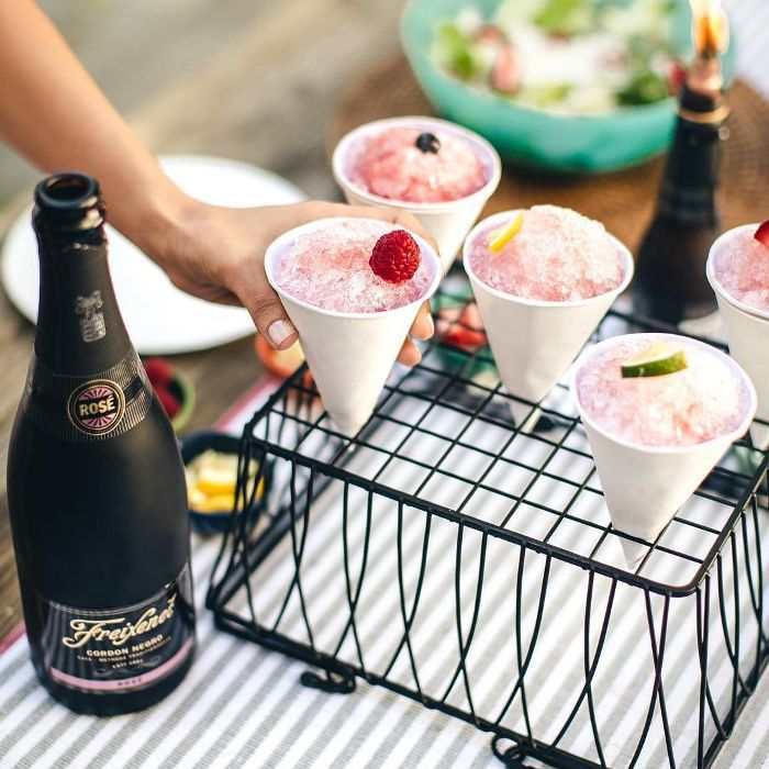 寻找新的池畔鸡尾酒?这冰冷的创作应该是你明年夏天去到。该的Freixenet,这个配方比标准的冷冻和混合方法稍微复杂一点,但仅就新奇的因素而言是值得的。只需将玫瑰、柠檬汁、稀释的糖和水倒入烤盘中冷冻即可。用叉子每30分钟耙一次混合物,持续3个小时,以达到雪锥的稠度。舀入纸锥,在上面撒上新鲜水果。