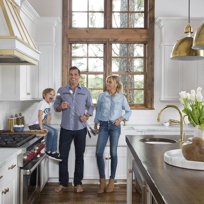 比尔·兰契奇在接受杂志采访时说:“这所房子不是我们的风格,它有小窗户,所以你看不到迷人的景色。”“我们完全改变了一切。”With Paul's guidance, they knocked out the back wall to create an indoor-outdoor feel, gut renovated the kitchen, and decorated according to Giuliana's love of rustic minimalism.