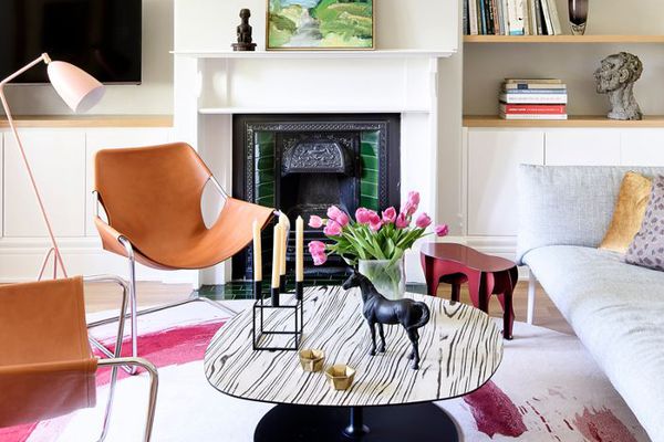 你不需要用一种深色的、深沉的炭笔来表达你的观点。杰德和安东尼柴家创造了一个明亮通风的环境,通过配对一只鸽子爱吃脸红的口音和一张白色的咖啡桌。浅橙色和灰色的印花地毯让你的造型更加完美,巧妙地证明它永远不会过时。