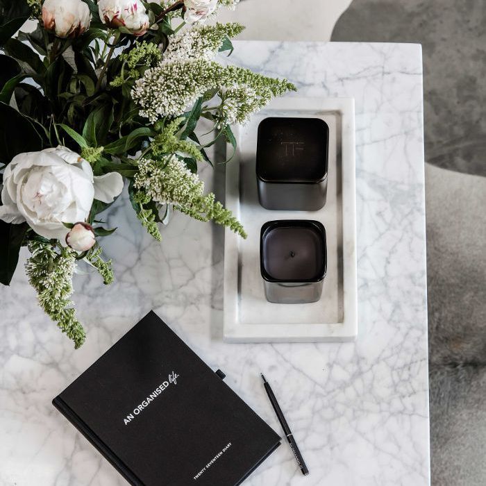 每个细节都经过精心设计,包括大理石托盘上的单色匹配蜡烛。