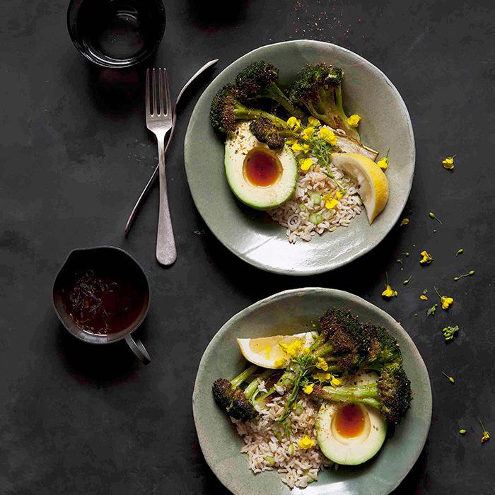 “我的消化系统不足以让我成为一名美食作家。所有的多道菜的晚餐,食品活动,配方测试,品尝。我知道,这不是一个悲伤的故事。仍然——用一个从罗马来的失散多年的朋友的话来说——这样吃会使我的肝脏受伤。这碗就是我肝疼的时候吃的东西:一大碗装满西兰花的糙米。加入柚子酱,也许,也许,一个鳄梨是我想去的颓废。