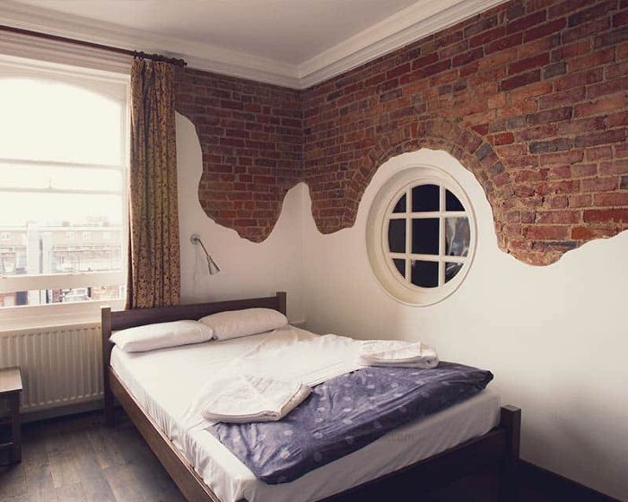 这个获奖的精品旅馆地理位置优越,位于伦敦市中心,并具有较大的宿舍和私人房间一系列小。我们这个裸露的砖块卧室的球迷,与地面空间的圆形彩色玻璃窗和充足。房间$ 40一晚开始。