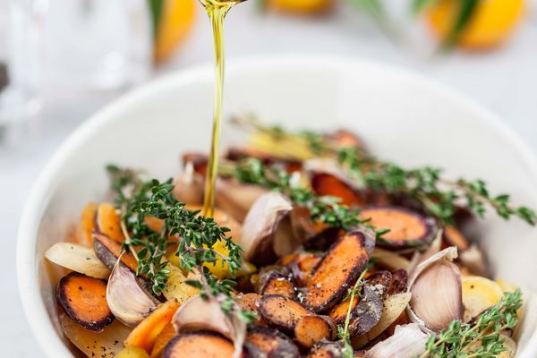 烤好红薯的关键是高热量和足够的注意力。你可以把土豆切成任何你喜欢的形状——块状,薯条但要确保它们的厚度相对均匀,这样才能煮透。在橄榄油或菜籽油中加入大量的盐和胡椒,然后放在衬有锡箔纸的烤盘上。