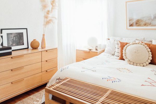 “我认为,你总是,总是需要将自然材料融入一个空间。我喜欢通过加入更多的乡村和编织材料来增加一些对比。这都是关于阴阳的。这将有助于改变一个房间,”卡尔德龙说。“你可以把书或杂志叠在这个篮子里,或者把多余的毯子和枕头叠起来。对于一种大型盆栽植物来说,它也是一种很棒的容器。”