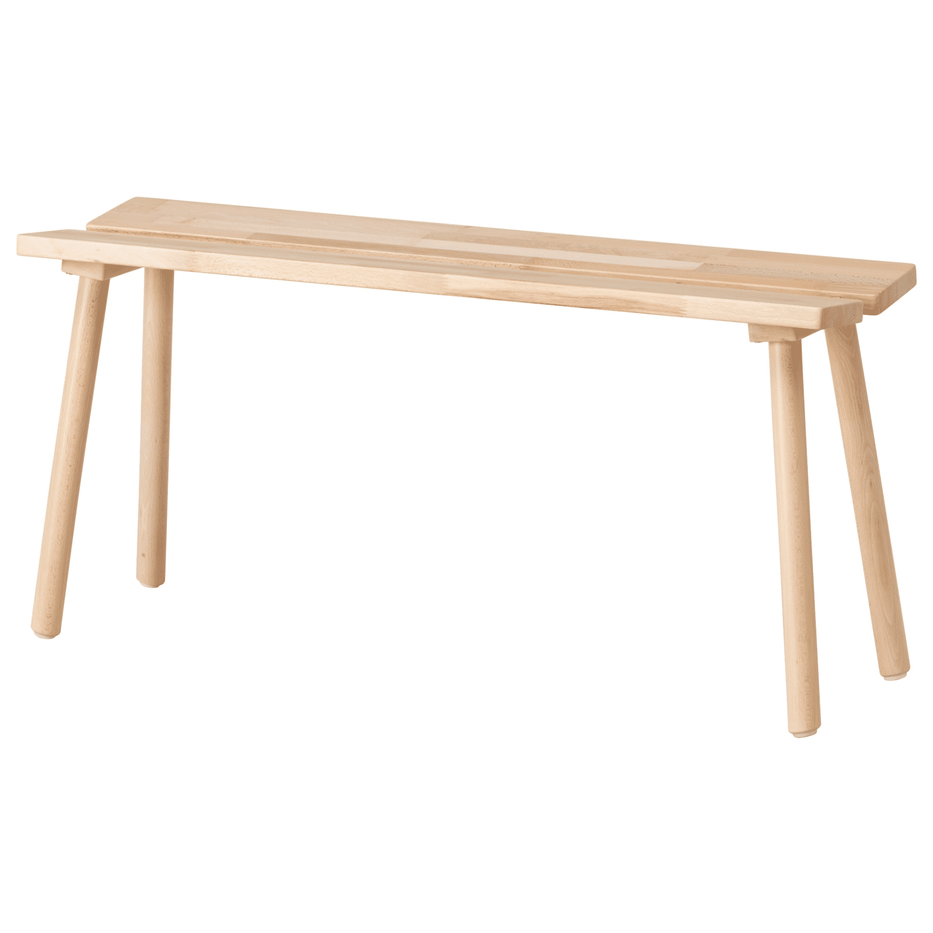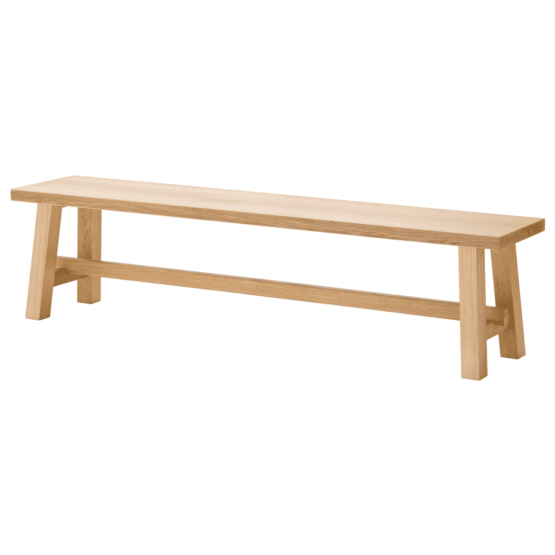 “这张长凳很窄,能装下最窄的空间。我喜欢金色的木头和销子腿。”