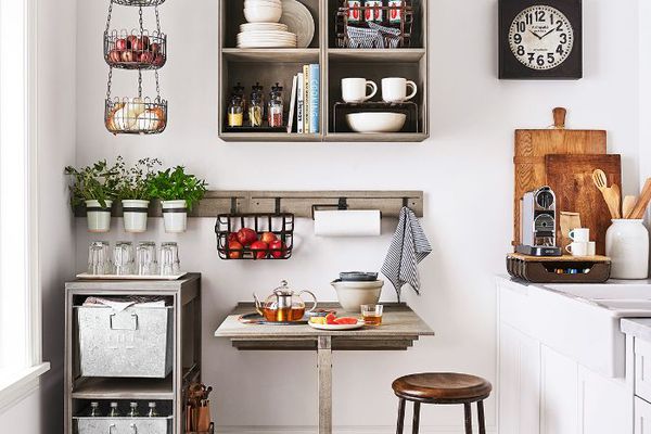 “正如我们的爱开放式货架对于厨房来说,它们很快就会变得杂乱无章。“好的第一步是评估你使用和需要的厨房用品的数量。这将保持您的存储流线型。可堆叠的盘子、碗和杯子将占用更少的空间。”