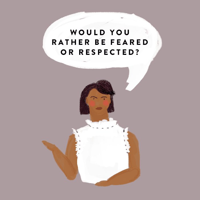 重复美国之后:“我宁愿得到尊重。在生活的任何方面,令人担心最终有损于你。作为一个成功的经理人,甚至同事需要你一起工作,建立信任和透明度。如果有人怕你,他们会要隐藏的东西,这是有损于总体任务“。