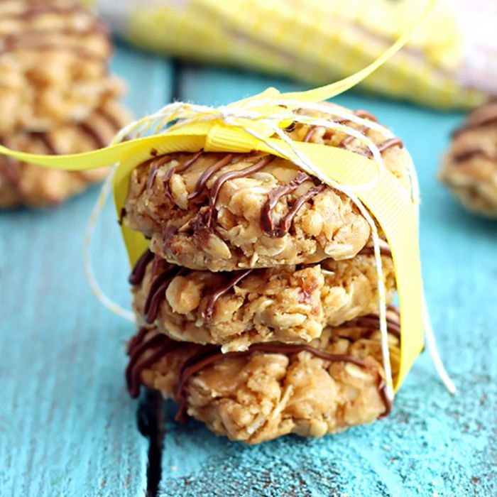 这是一个完美的早晨配方尝试,如果你开始戒掉甜的东西。制作花生酱(我们推荐贾斯汀的),蜂蜜,锅巴,燕麦,亚麻籽,香草毛毛雨,和牛奶巧克力光毛毛雨,这些自由烘烤束不在无奶,无麸质的类别。但他们仍然是健康的脂肪和谷物的重要来源。点击这里食谱。