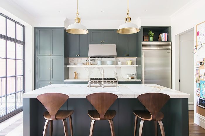 根据调查,“业主们正在翻新他们的厨房,以创造一个超级厨房它不仅有多种用途,还融合了其他房间的传统特征、功能和装饰,极大地模糊了厨房和其他生活空间之间的界限。”一个staggering 69% of the 2400 surveyed homeowners said they used their kitchen for eating and dining, while 49% entertained in the space. Among the popular features added in U.S. kitchens in the past year are TVs, workspaces, and dining tables.为了帮助你计划你的下一个改造,我们已经围捕充满了如何重新创建你自己的家外观伟大的秘诀我们最喜欢的开放式厨房。准备好针到你梦想的家板。
