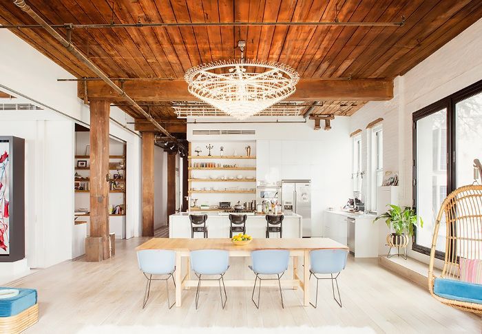 在布鲁克林威廉斯堡社区的这个阁楼空间里,整个生活区通向厨房,给这个家庭提供了一个机会,让他们有更多的时间在一起,并为更大的群体提供了一个很棒的娱乐空间。