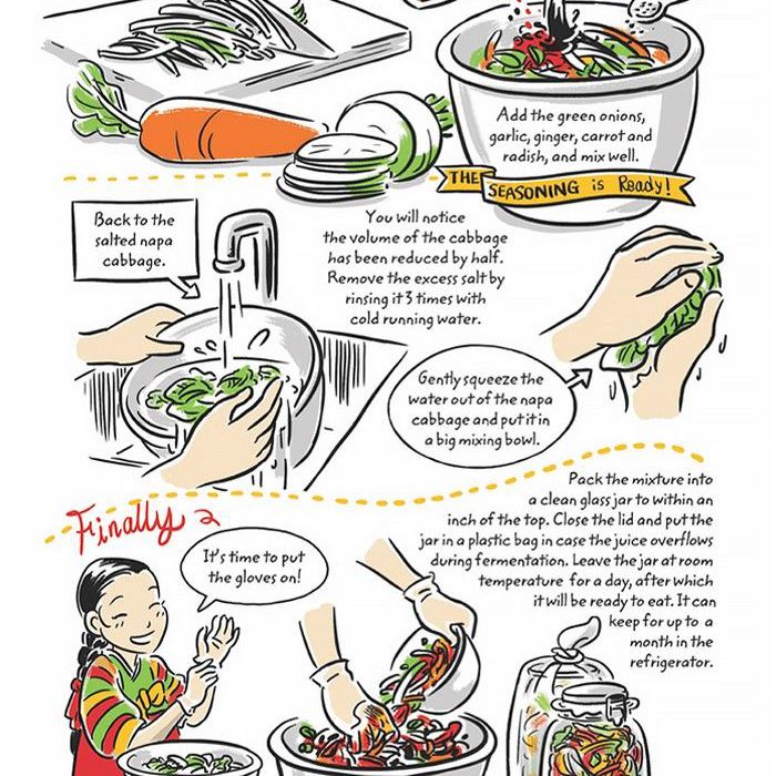 想了解一些韩国食物的小知识、插图和食谱,请参考下面罗宾·哈(Robin Ha)的漫画食谱。