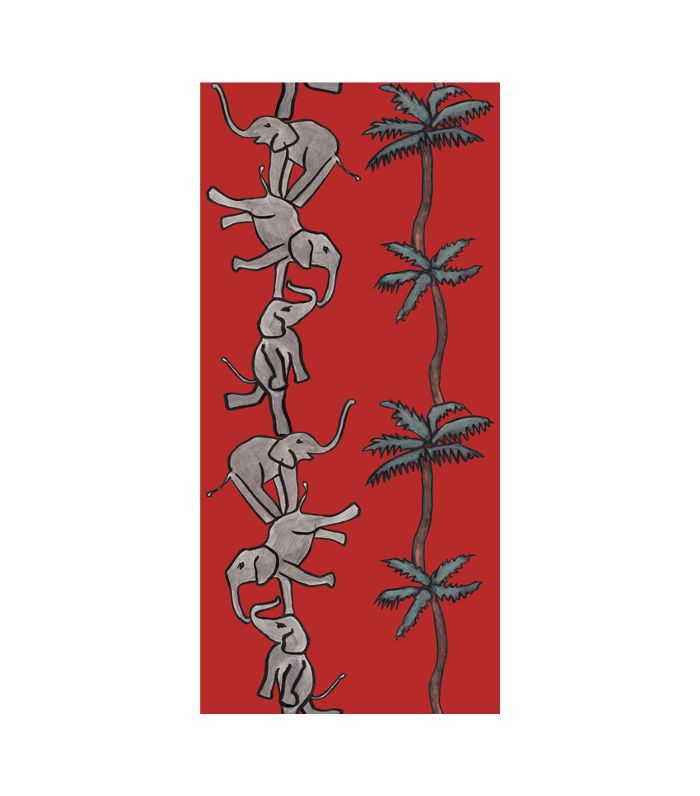 她解释说,有了一个中性的底座,“我们可以在餐厅里用一幅单独的壁画来营造出一种古怪的感觉”,“在这幅壁画里,我们委托一位艺术家在红色背景上画大象和棕榈树”。