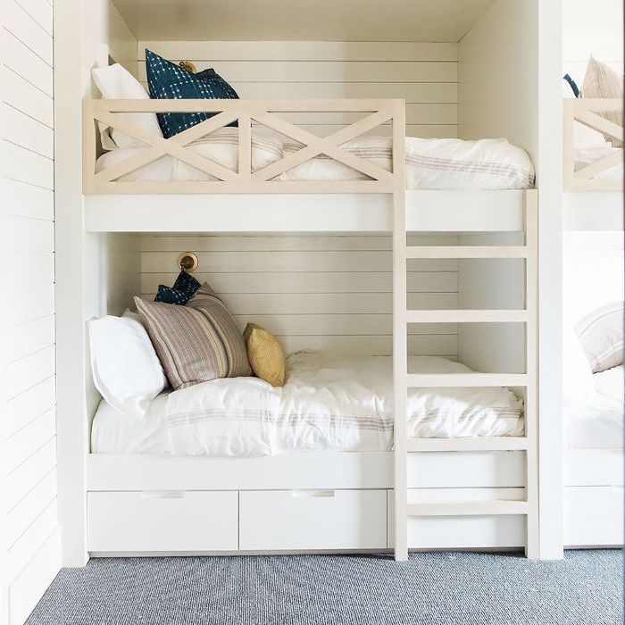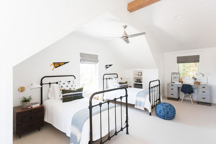 例如,使用“书柜是一样高,你可以找到,因为它们会干扰孩子,因为他们长大,允许灵活性和额外的存储过渡。”无论您选择使用并排侧两张单人床或双层床,麦克伦登说,在一个精心设计的衣柜投资是最大限度地提高空间的本质,因为你将不必使用笨重的家具进行存储。