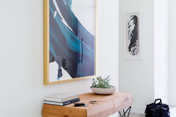 杭画,打印或者两个相交的墙壁上的照片得到这个雅致的外观。大胆的去用两种完全不同的艺术作品,或者创建由同一位艺术家,媒体,或配色方案挂工作一个有凝聚力的样子。这些作品的类似的框架和黑色的口音连接的空间。