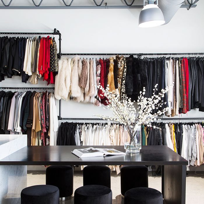 由于罗斯租下了这个空间,亚当斯的团队无法进行任何重大的建设,但他们确实在管道外安装了定制的悬挂杆,创建了一个试衣间,安装了全高的鞋架和岛,并悬挂了艺术品。