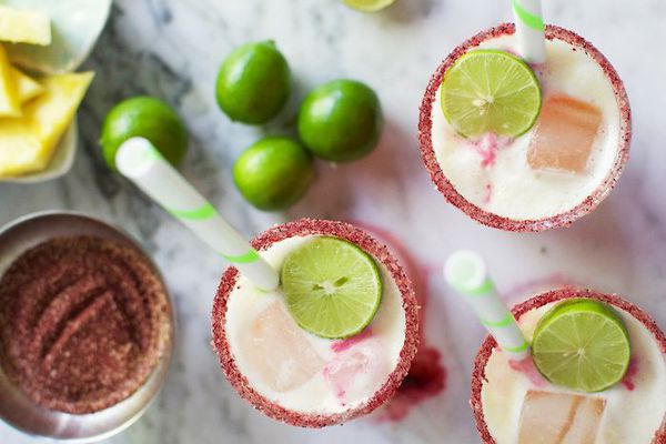 冷静下来:“添加了一堆石灰,在轮辋上点盐(我用粉红色喜马拉雅盐,因此颜色),这是一个龙舌兰酒少玛格丽塔和咸狗减去伏特加酒之间的交叉,”她说。“它的味道这么好,新鲜。”