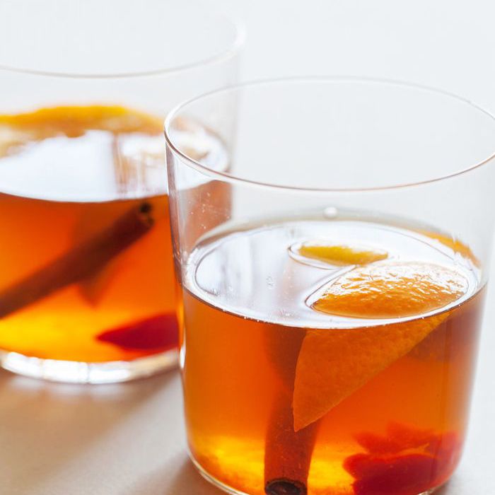 通过对经典的创造这个游戏让你的冬季香料修复老式。你需要糖,水,小豆蔻,茴香,肉桂,波旁酒,橙楔子,和樱桃,使饮料。煨炉香成分,然后紧张你简单的糖浆。接下来,摇冷冻糖浆,波旁威士忌和冰一起。最后,洒上橙色楔子。