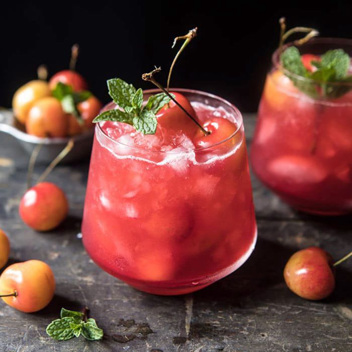 的这种甜樱桃版本老式呼吁樱桃,石灰,橙色苦味,蜂蜜,波旁酒,薄荷。确保蒙混樱桃,石灰,苦味,和蜂蜜以获得最大的多汁的成分。倒入内容在冰上,然后用额外的樱桃和薄荷叶配菜之前,波光粼粼的水面之上。