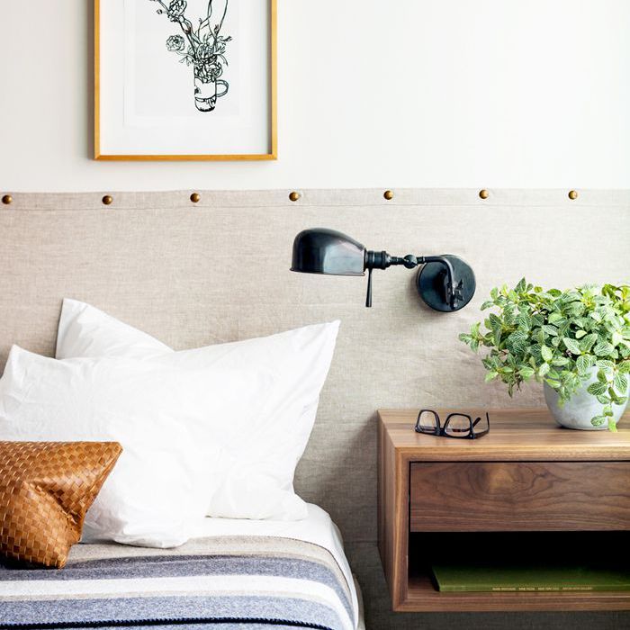 床头柜是功能性的,但Mazzarini说,他们不应该是放弃所有配件的地方。“当一间卧室的感觉就像是一个巨大的精品酒店的房间,我喜欢。没有太多,只是合适的配件解决这个问题,”他说。“我们喜欢与小碗装备室(钥匙,耳环,手表,手机),玻璃水瓶水,总是鲜花和一个地方不显眼充电的手机。”