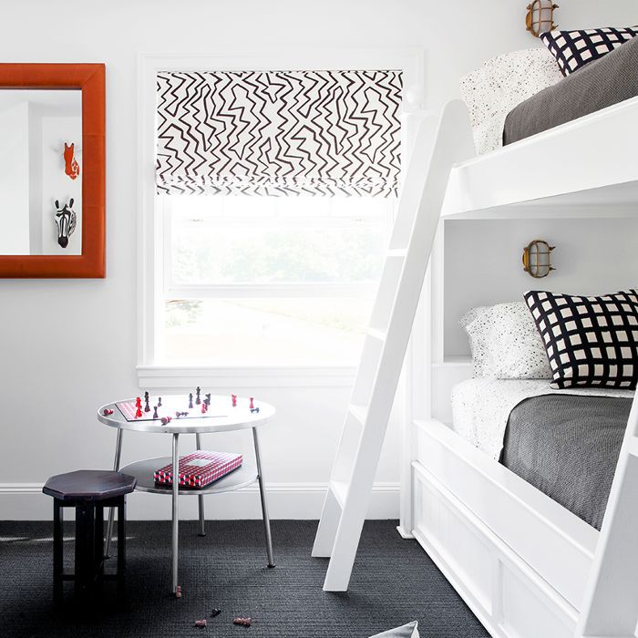 “当我们设计一个孩子,我总是喜欢那里是奇思妙想的感觉,但我从来没有谈下来给他们,”他说。“在这个周末的房子孩子们的房间,我们是被孩子们的图纸和手指画飞溅涂床单,水彩枕头启发混合图案和纹理,这真棒定制的涂鸦罗马帘是有趣的,但不是单纯的。”