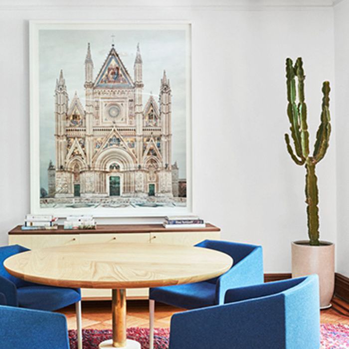 号召所有最高纲领,这个空间散发出的自信,奇思妙想,并没有像其他创造性的空气。我们爱的钴蓝色的椅子之间的对比,浅桃色画砖墙,和橄榄绿色的色调,并大胆的黑色和金色的灯具关系的空间一起。