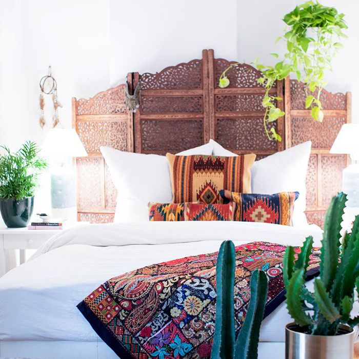 DuBoise解释说,卧室是在塞多纳/沙漠女孩在她照过。“这是摩洛哥满足塞多纳,”她说的空间。“我从简陋的别致漂亮的床单被褥,然后把我最喜欢的顶级生活毯藏树。该蒲团把房间休息悠闲的氛围,我很喜欢,而且布拉德,我的设计师,大对引进植物成每个单间“。