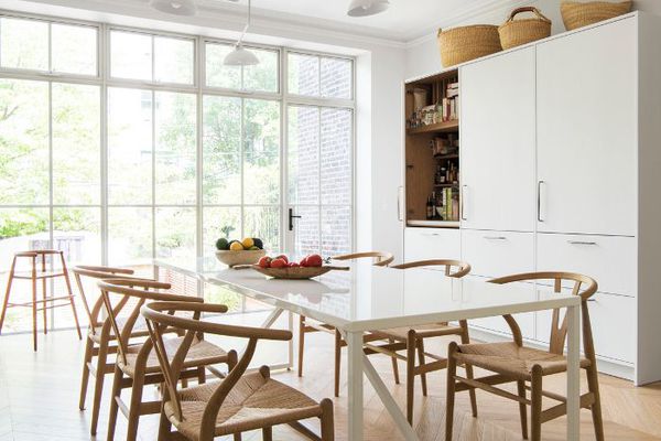 小白色的厨房并不像其他一些趋势一样奇怪或抢眼。事实上,它们完全明智:已知彩色白色使空间看起来更大,更开放,而清晰的中性是厨房的自然补充,这通常是一个明亮且充气的空间。