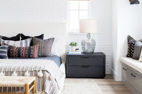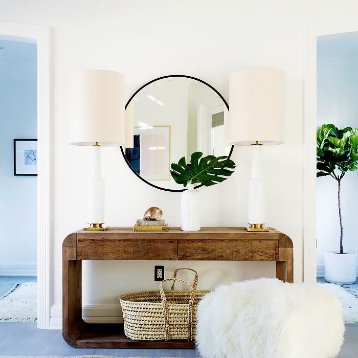 平衡纹理。Cerrano说,最终的禅宗之家在硬和软的材质之间取得了微妙的平衡——想想阴阳。她解释说:“阴是女性的能量,可以在物理环境中转化为柔软的纹理、较暗的颜色和较低的光线。”“杨与男性能量有关,这可以解释为坚硬的表面、坚实的纹理和照明良好的空间。”Make sure your space is balanced with soft items like a mohair throw and hard surfaces like mirrors or ceramic lamps.
